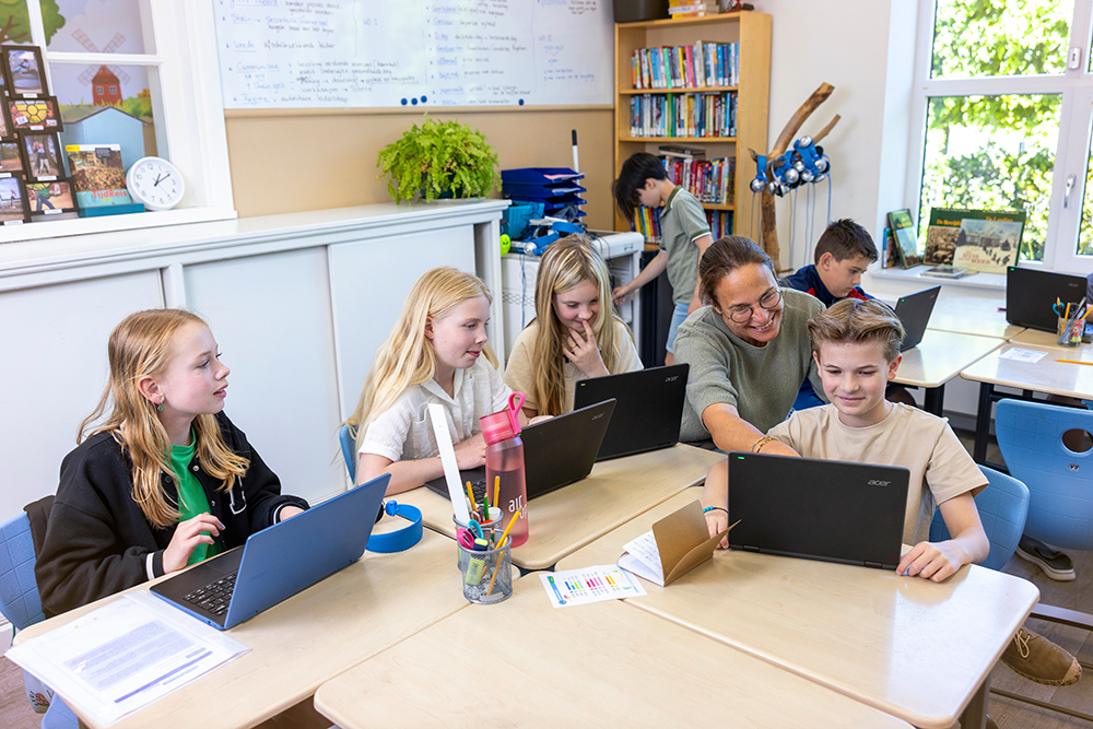 Wij zijn trots op ons positieve pedagogische klimaat. Bij ons mag je zijn wie je bent. We werken vanuit wat goed gaat, benoemen successen en bouwen daarop verder. We geloven in het voorleven en voordoen en in de kracht van persoonlijke aandacht. Onze school is een gemeenschap waarin samen leren centraal staat, zowel voor de leerlingen onderling als voor het team. Onze leerkrachten vormen een stabiel en betrokken team dat toegankelijk is voor ouders en voortdurend werkt aan nieuwsgierigheid en leergierigheid, zowel bij zichzelf als bij de leerlingen.