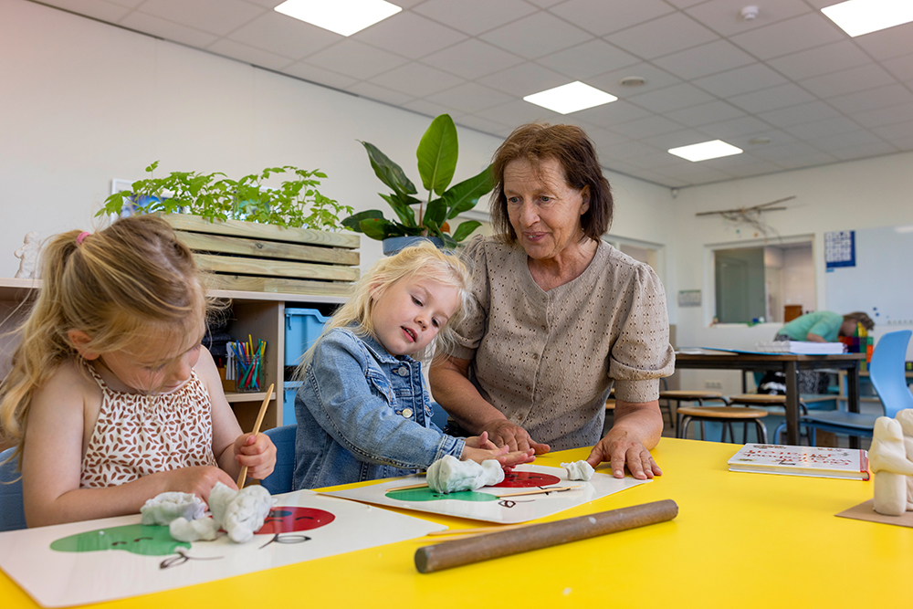 Samen met de kleuters doet je peuter mee aan leuke, op hun niveau afgestemde activiteiten, passend bij het thema waar de kleuterklas op dat moment mee bezig is. De kleuters genieten ervan om de peuters te helpen en te laten zien wat ze al kunnen en spelenderwijs ontdekken de peuters wat het basisonderwijs te bieden heeft.